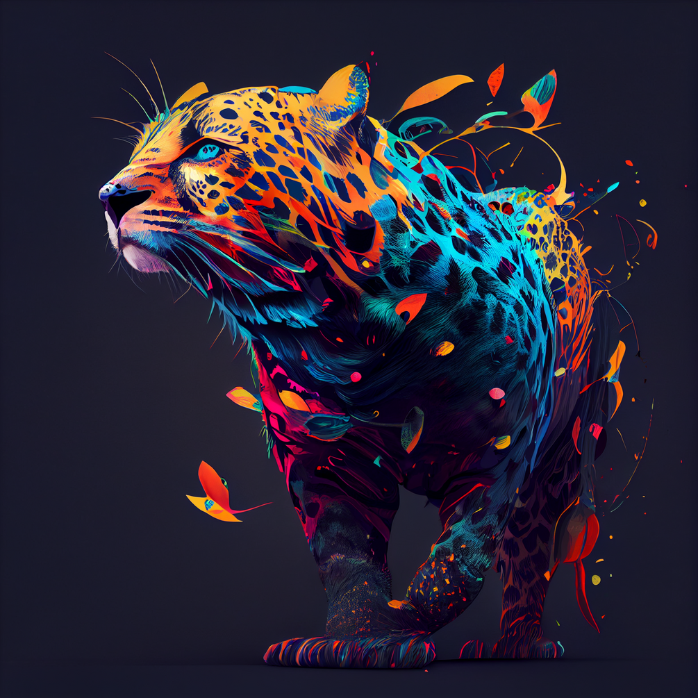 Animal colorful art is a vibrant and visually striking form of art that features animals depicted in bold and bright colors. It can be found in a variety of media and settings and celebrates the beauty and diversity of the natural world.